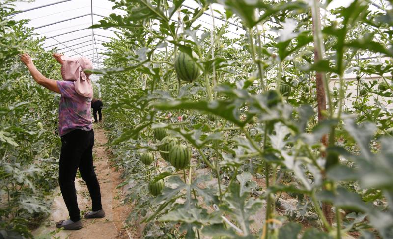 瓜農(nóng)在管理西瓜