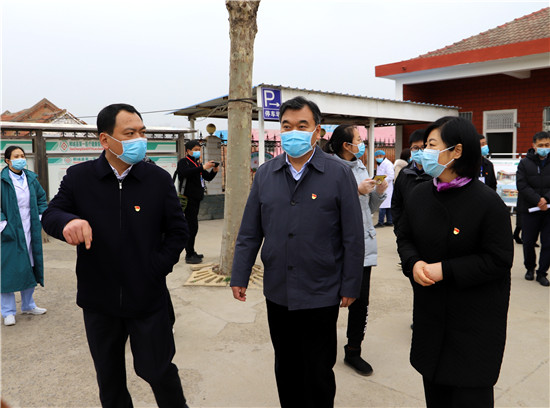 (2020年2月26日,市委書(shū)記劉繼標(biāo)在鄲城縣虎崗鄉(xiāng)村衛(wèi)生室聽(tīng)取羅文閣、李全林關(guān)于醫(yī)共體建設(shè)工作匯報(bào)。)