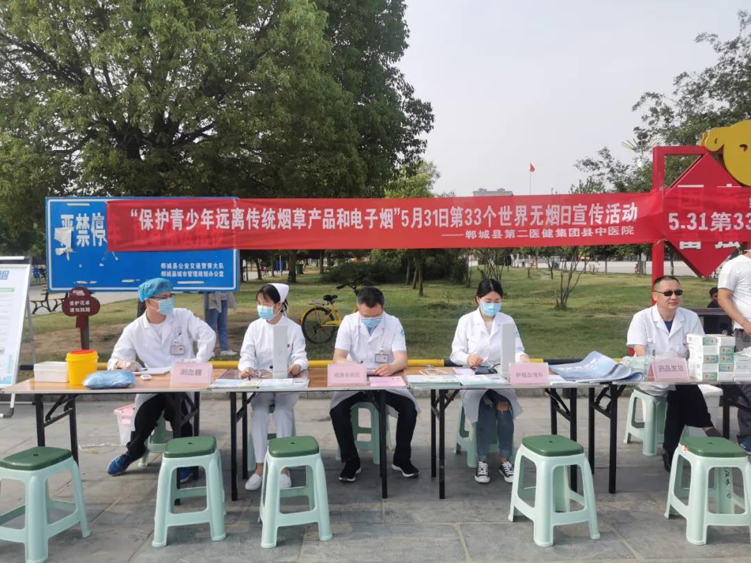 今年5月31日是第33個世界無煙日,本次主題是“保護青少年遠離傳統(tǒng)煙草產(chǎn)品和電子煙”。5月30日上午,鄲城縣第二醫(yī)療健康服務(wù)集團縣中醫(yī)院在世紀(jì)廣場開展了義診宣傳活動,進一步加強煙草危害和控?zé)熣咝麄?,科學(xué)引導(dǎo)青少年樹立拒絕傳統(tǒng)煙草產(chǎn)品和電子煙的健康理念,遠離煙草危害,保護青少年身心健康。