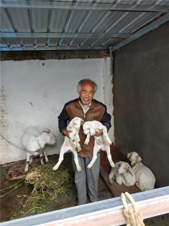 捐贈(zèng)的綿羊下了崽,毛立明臉上樂(lè)開(kāi)了花。