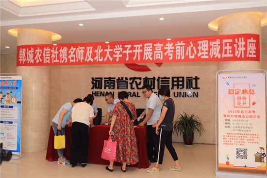 “穩(wěn)定心態(tài)、靜等花開(kāi)”高考公益講座是由鄲城農(nóng)信社內(nèi)訓(xùn)師團(tuán)隊(duì)組織、策劃的第一次大型公益活動(dòng),農(nóng)信社黨委高度重視,在各科室及各信用社的大力支持和配合下,這次活動(dòng)取得圓滿(mǎn)成功,并獲得高度社會(huì)贊譽(yù)。