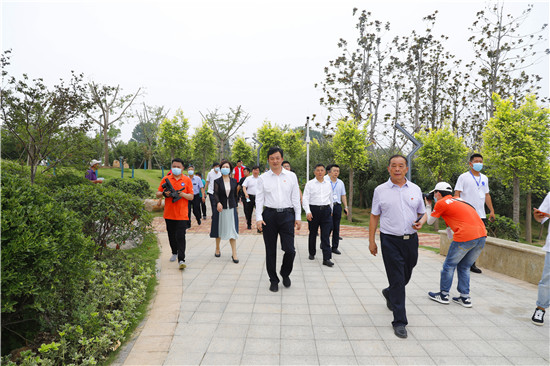 開園儀式結(jié)束后,與會(huì)領(lǐng)導(dǎo)在志愿者的引導(dǎo)下乘車沿公園步道對(duì)賈魯河生態(tài)濱河公園進(jìn)行參觀游覽。