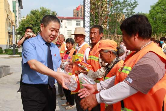 6月18日下午,西華縣檢察院黨組書記、檢察長鄭清朝帶領(lǐng)該院志愿者服務(wù)隊開展慰問環(huán)衛(wèi)工人志愿者活動,為775名環(huán)衛(wèi)工人送去毛巾、洗衣粉、香皂、水杯、礦泉水等價值近3萬元的慰問品,以此表達對普通勞動者最真摯的關(guān)懷。