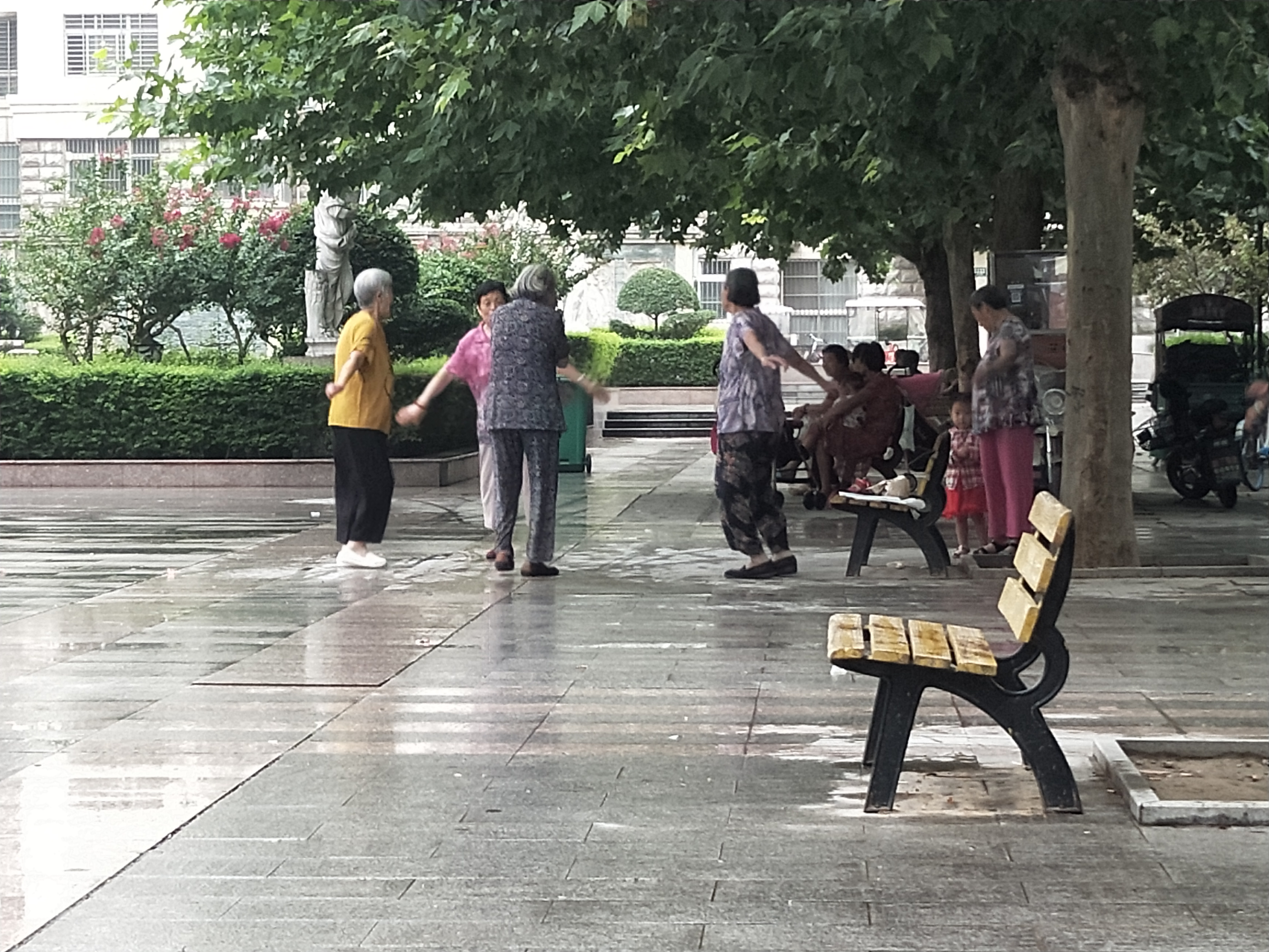 上午8點,天空隱約下著小雨,記者在北門小區(qū)廣場的噴泉旁邊轉轉。幾位70多歲的老人坐在排椅上,音響里傳來很大的戲曲聲回蕩在廣場上?!白疃鄷r有十幾個人吧,每天早上8點左右開始做操,音響聲音調得比較大,我家恰好就在這噴泉廣場西邊,在家里聽得很清楚?!崩钆恐v,由于工作原因,她經常上夜班,想睡個好覺也不能如愿,她也向物業(yè)反映過,可是一直沒有什么效果。
