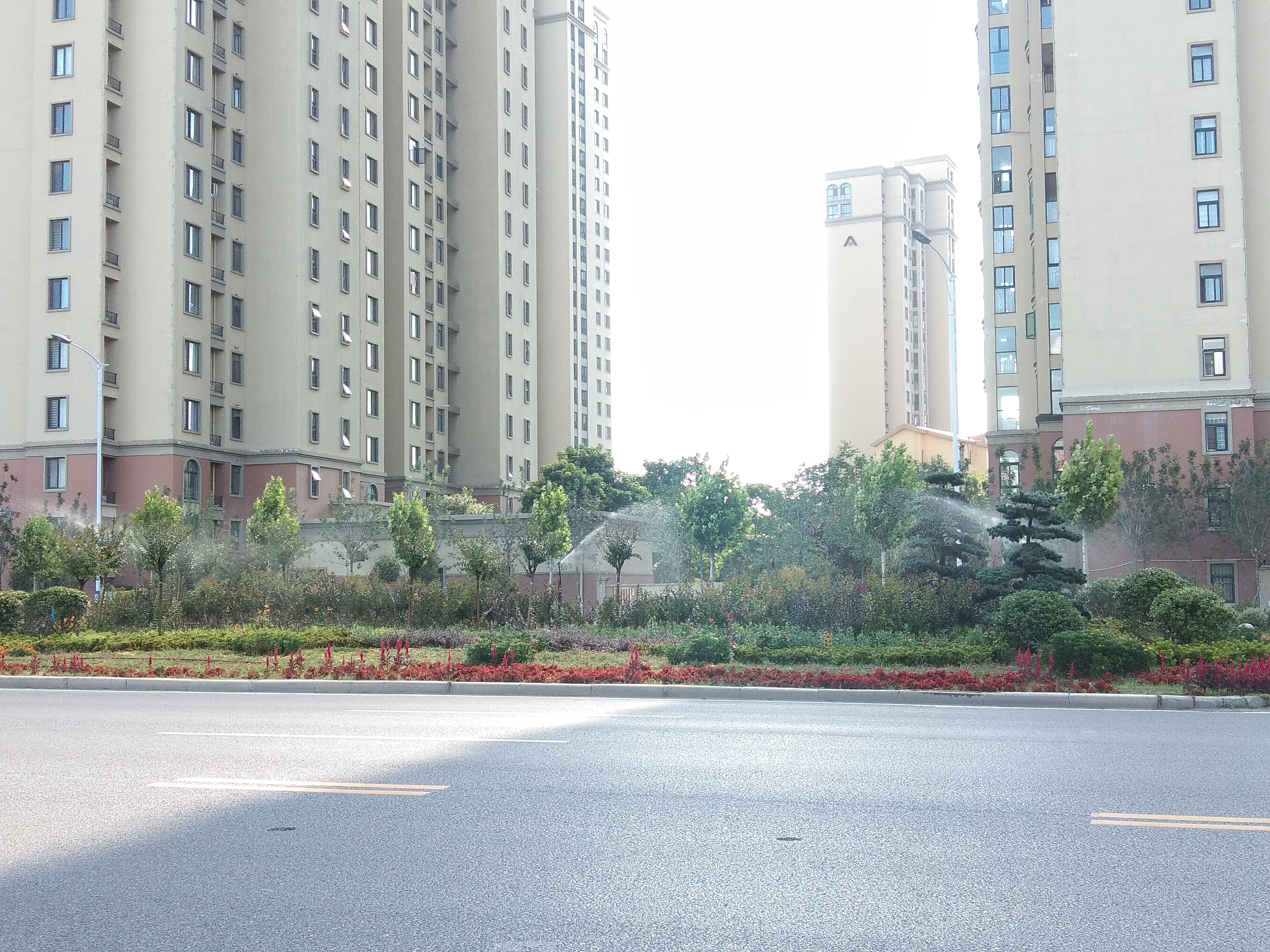 8月17日下午,高溫炙烤之下,讓人酷熱難耐,在周口大道橋北側(cè)的景觀帶內(nèi),工作人員打開自動噴水系統(tǒng),給景觀帶內(nèi)花木降溫、解渴。周口日報·新周口客戶端記者 張洪濤 攝