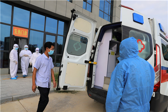 演練中,一名中年男子駕車到港區(qū)醫(yī)院就診,患者自述一周來在外地居住,無發(fā)熱癥狀,近一天來有氣促,活動后胸悶、氣促加重,偶有咳嗽。經(jīng)急診科醫(yī)生多次詳細詢問流行病學史,發(fā)現(xiàn)患者有隱瞞病史嫌疑(一周前同室居住工友,23日已確診為新冠患者),確定該病員為可疑新冠病毒肺炎患者。立即電話通知科主任及醫(yī)療救治專家組成員會診,根據(jù)患者主訴和臨床表現(xiàn),專家組分析高度懷疑病人為可疑感染新冠病毒病員。立即轉運至隔離留觀室,并通知傳染病管理小組將疫情上報至市疾病預防控制中心,并協(xié)助對該病員進行流行病學調查、轉運及指導消毒、滅菌等工作。經(jīng)市級專家會診后,符合疑似病例,按照區(qū)防控指揮部規(guī)定,采用負壓轉運車轉運定點醫(yī)院治療。