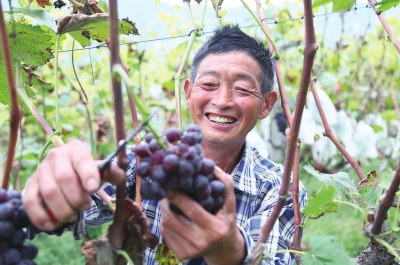 9月14日,汝陽縣十八盤鄉(xiāng)斜紋村冰墨葡萄種植專業(yè)合作社社員在葡萄園里采摘葡萄。斜紋村黨支部積極引導村民種植冰墨葡萄130畝。該村通過發(fā)展優(yōu)質高效農業(yè),帶動農民走上致富路。