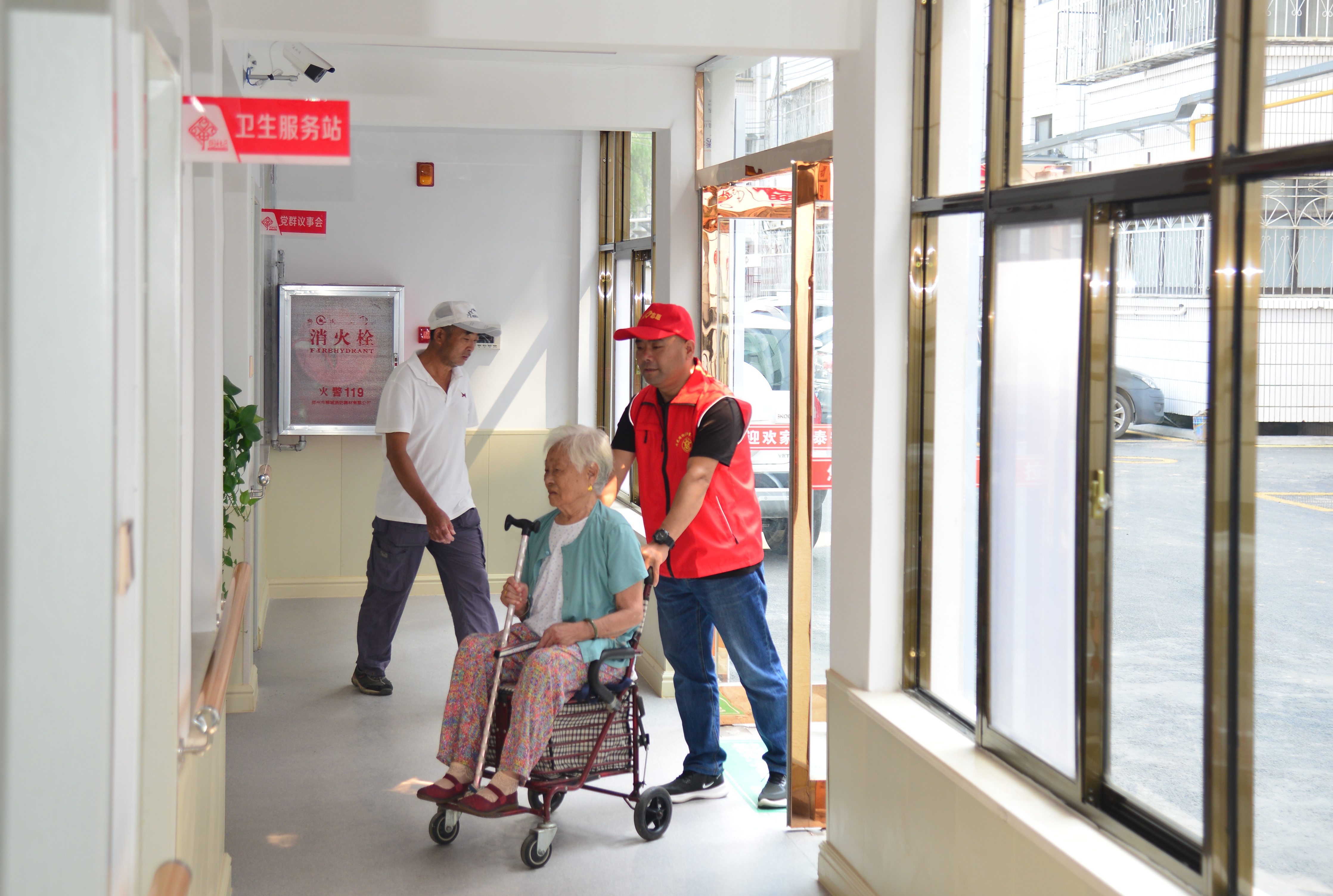 川匯區(qū)西楊莊社區(qū)志愿者接行動不方便的居民到社區(qū)服務(wù)中心參加活動