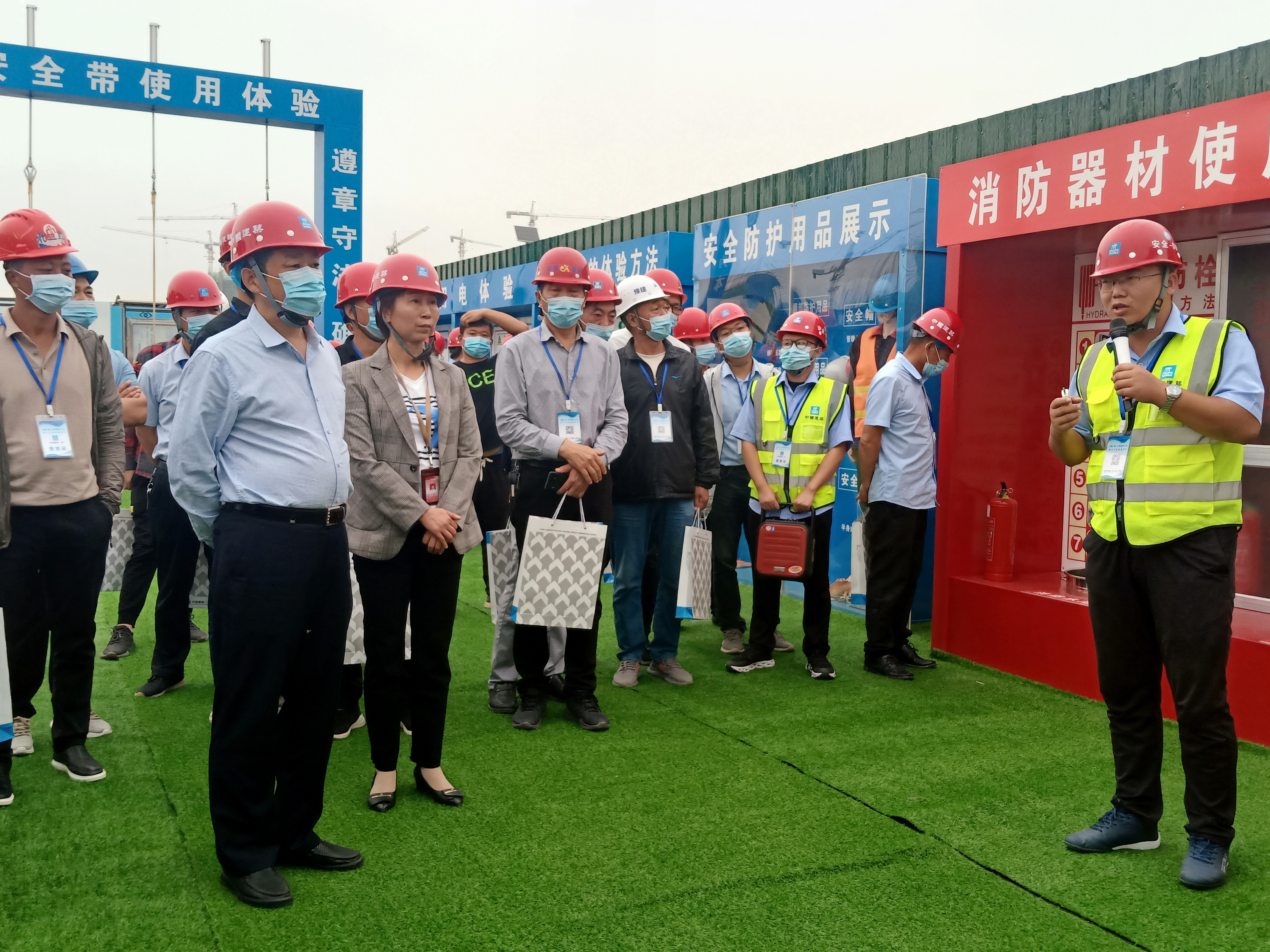 現(xiàn)場(chǎng)會(huì)啟動(dòng)儀式結(jié)束后,與會(huì)人員一同現(xiàn)場(chǎng)觀摩了周口寧和家園A區(qū)項(xiàng)目在安全風(fēng)險(xiǎn)分級(jí)管控與事故隱患排查治理雙重預(yù)防體系建設(shè),多種形式安全專項(xiàng)活動(dòng)、綠色施工要求,揚(yáng)塵治理管控,BIM+智慧工地建設(shè),智能安全帽應(yīng)用等安全文明施工方面的先進(jìn)做法和經(jīng)驗(yàn),并給予一致稱贊。