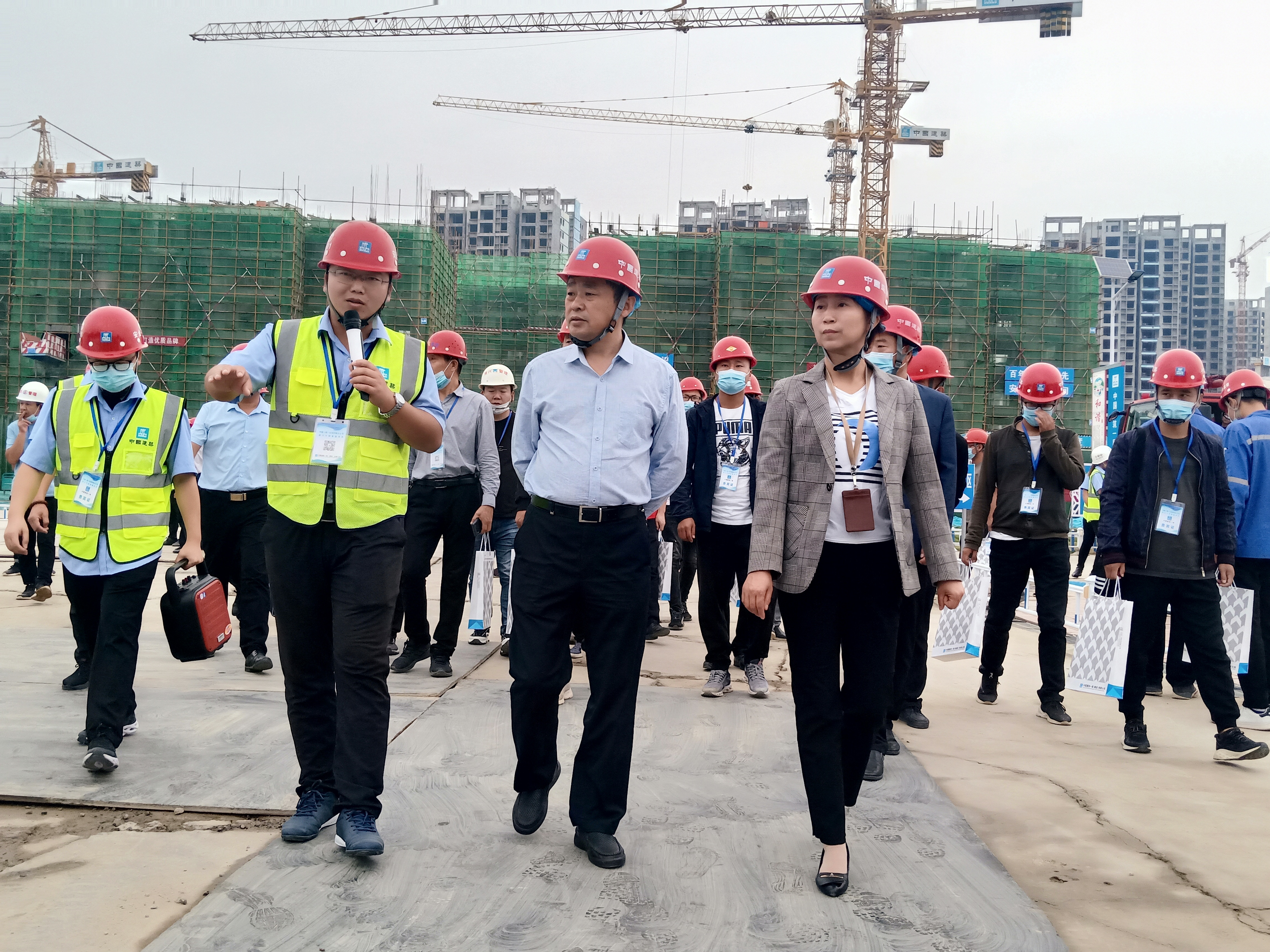 9月29日上午,周口市城鄉(xiāng)一體化示范區(qū)建筑行業(yè)安全文明施工暨雙重預(yù)防體系建設(shè)現(xiàn)場(chǎng)觀摩會(huì)在中建一局周口寧和家園A區(qū)項(xiàng)目地順利舉行。市應(yīng)急管理局副局長(zhǎng)張群峰、市城鄉(xiāng)一體化示范區(qū)管委會(huì)副主任張曉、示范區(qū)住建局局長(zhǎng)閆國(guó)政、示范區(qū)應(yīng)急管理局局長(zhǎng)劉靖等相關(guān)領(lǐng)導(dǎo)與67家建筑單位代表300余人共同參加此次現(xiàn)場(chǎng)觀摩會(huì)。