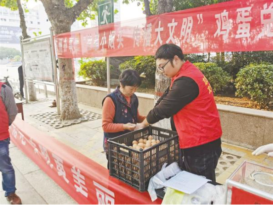 原來這是川匯區(qū)陳州辦事處在五一廣場舉辦的“撿起小煙頭 傳播大文明”煙頭換雞蛋活動。該辦事處工作人員表示:“五一廣場周邊人流量大,亂丟煙頭現(xiàn)象嚴重,治理困難,我們很苦惱,于是想出了這個煙頭換雞蛋的妙招,居民可以拿20個煙頭換一個雞蛋。活動的目的就是發(fā)動一批人撿拾煙頭,影響帶動周邊的人,讓更多的人參與撿煙頭,讓吸煙的人不好意思丟煙頭,增強市民的環(huán)保意識和文明意識。”