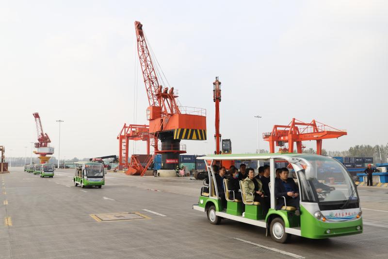 在中心港碼頭,工作人員向來賓詳細(xì)介紹了周口的航運(yùn)總體情況,以及在周口大力發(fā)展臨港經(jīng)濟(jì)的大背景下,周口港區(qū)臨港產(chǎn)業(yè)規(guī)劃布局和發(fā)展現(xiàn)狀。隨后,來賓乘坐觀光車,到港池前沿近距離了解碼頭運(yùn)營情況,親身感受碼頭繁忙的作業(yè)現(xiàn)場同時,來賓們向工作人員了解碼頭貨源、運(yùn)量、運(yùn)輸費(fèi)用等問題,工作人員詳細(xì)解答。大家紛紛贊嘆:“想不到中原腹地?fù)碛腥绱藘?yōu)越的水運(yùn)條件,還建設(shè)了規(guī)模宏大的內(nèi)河港口,周口臨港經(jīng)濟(jì)發(fā)展氣勢如虹,前景一片光明!”②9