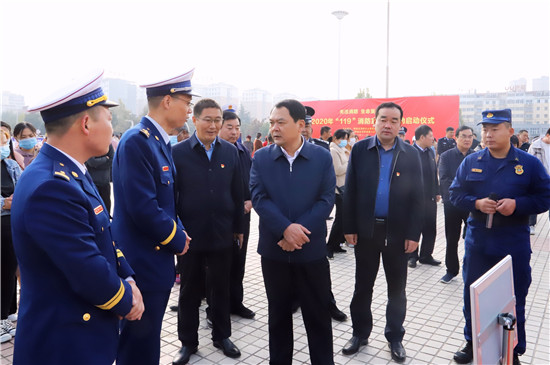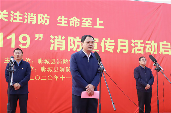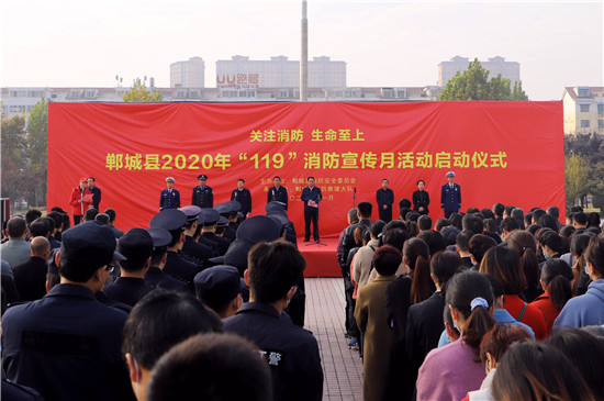 11月11日,鄲城縣在世紀廣場舉行2020年消防宣傳月活動啟動儀式,目的是進一步提高全民消防安全意識,促使“關(guān)注消防 生命至上”的主題深入人心,廣泛發(fā)動社會各界關(guān)注消防、參與消防,營造良好的宣傳氛圍,預防和減少火災事故發(fā)生,確保人民群眾生命財產(chǎn)安全??h長李全林出席會議并宣布消防宣傳月活動啟動,縣委常委、常務副縣長胡友濤主持會議,縣領(lǐng)導謝超、王彪、陳鳳祥、李素梅及縣公安局政委趙紅建參加會議。