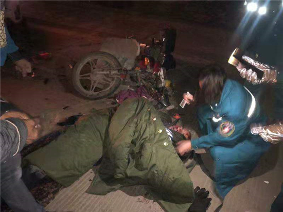 12月11日5時24分許,在商水縣城巴路、湯莊鄉(xiāng)大趙村扶貧服務(wù)點門口處,商水縣舒莊鄉(xiāng)吳莊村11組韓同首駕駛豫P1Z851號小型普通客車由西向東行駛時與相對方向行駛的舒莊鄉(xiāng)北王張村9組張義來駕駛的無牌兩輪摩托車發(fā)生交通事故,造成車輛損壞,張義來及無牌兩輪摩托車乘車人張金在受傷。商水縣交警大隊與周口人和醫(yī)院立即啟動“警醫(yī)結(jié)合”救治機制,開通綠色入院通道,采取零繳費先救治措施,對傷者迅速進行救治,傷者暫時還在救治中。此事故的傷員救治過程,充分展現(xiàn)了“警醫(yī)合作”機制的優(yōu)越性和可行性,傷者家屬對公安機關(guān)和醫(yī)院十分感謝。①15