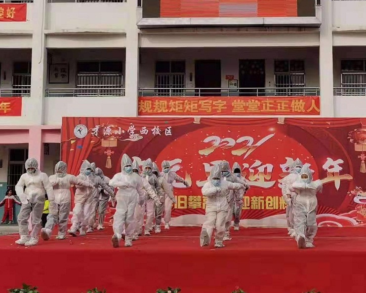 為進(jìn)一步踐行社會主義核心價值觀,弘揚(yáng)新時代愛國主義精神,近日,鄲城縣各學(xué)校在舉行慶元旦迎新年活動時,紛紛編演抗疫主題的舞蹈、小品、情景劇等節(jié)目,謳歌抗疫精神,致敬抗疫英模,祝福偉大祖國。