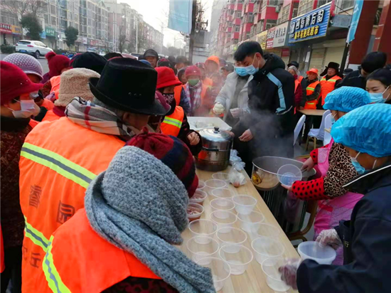 活動(dòng)當(dāng)天,在鑫豐苑·瑞隆府售樓部門口彌漫著臘八粥的香味。為了能讓大家喝到新鮮的臘八粥,這家愛心企業(yè)人員凌晨4點(diǎn)就開始忙碌了,在做好疫情防控的前提下,他們仔細(xì)挑選材料、淘洗、入鍋,經(jīng)過兩個(gè)多小時(shí)的精心熬制,終于讓大家吃上了甜甜糯糯的臘八粥。暖暖的臘八粥,讓大家共同感受節(jié)日的氣氛。"打掃衛(wèi)生來得早,沒時(shí)間為家人熬粥,喝了這一碗熱乎乎的臘八粥,感覺渾身暖乎乎的",環(huán)衛(wèi)工人李女士說。