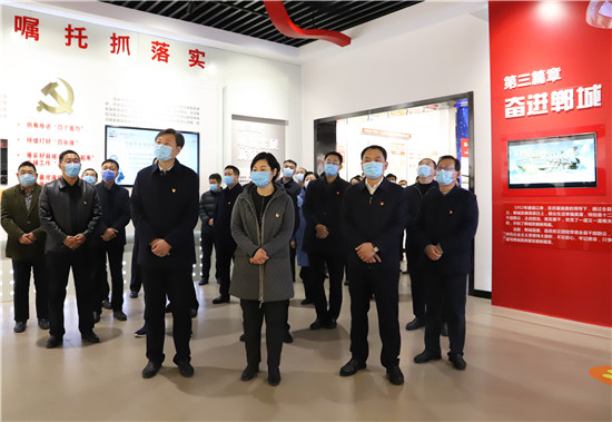 2月18日,新年上班第一天,市人大常委會副主任、鄲城縣委書記羅文閣,縣委副書記、縣長李全林帶領(lǐng)縣四個班子領(lǐng)導和部分縣直單位黨員干部,開展中共黨史學習教育活動,激勵全縣各級黨員干部不忘初心、牢記使命,在新時代不斷加強黨的建設(shè),更加緊密地團結(jié)在以習近平同志為核心的黨中央周圍,始終保持永不懈怠的精神狀態(tài)和一往無前的奮斗姿態(tài),振奮精神,堅定信心,銳意進取,真抓實干,奮力譜寫全面建設(shè)社會主義現(xiàn)代化鄲城新篇章,以優(yōu)異成績迎接建黨100周年。