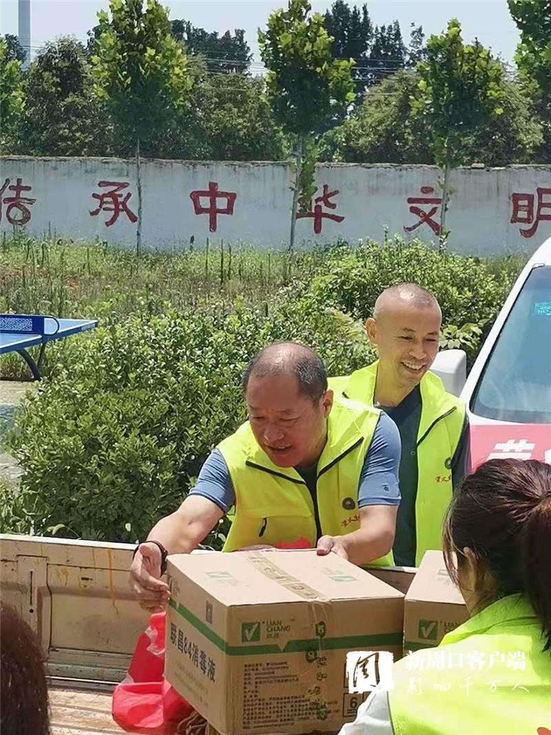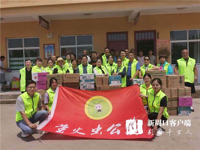 時(shí)刻關(guān)注受災(zāi)群眾動(dòng)態(tài)的周口螢火蟲公益組織得知這一情況后,于7月30日上午再次奔赴西華縣紅花鎮(zhèn),為即將返家的王橋行政村村民送去呋喃西林粉、蚊蟲叮咬液、消毒凝膠、口罩、84消毒液等價(jià)值兩萬余元的消殺物資?!班l(xiāng)親們今天回家,這些東西正好用得著。謝謝你們!”王橋行政村村干部和富平代表村民向周口螢火蟲公益表示感謝。
