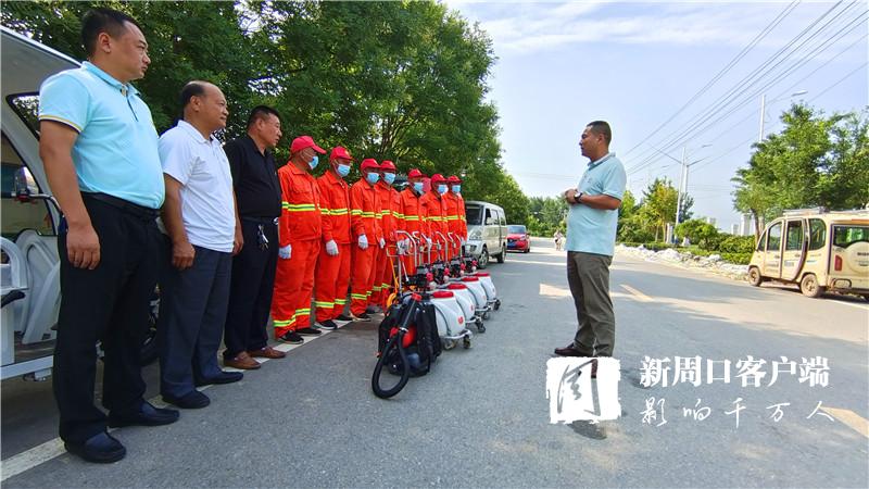 “老關(guān),你們?nèi)膫€(gè)人去女?huà)z景區(qū)消殺。老王,老溫你們兩個(gè)人去村莊消殺,尤其是旮旯處、垃圾堆、屋后等隱蔽重點(diǎn)區(qū)域一定消殺徹底,不留空白。在村莊內(nèi)進(jìn)行消殺時(shí),一定要和群眾交代好防疫消毒時(shí)的注意事項(xiàng)?!?月30日9時(shí)許,來(lái)自廣州市鴻鷹害蟲(chóng)防治服務(wù)有限公司周口分公司的10多名愛(ài)心人士載著4臺(tái)機(jī)動(dòng)手推式滯留噴霧機(jī)、1臺(tái)電動(dòng)背負(fù)式超低容量噴霧機(jī)、1臺(tái)大型車載式超低容量噴霧機(jī)和230公斤消毒劑,來(lái)到西華聶堆鎮(zhèn)思都崗村后,該公司負(fù)責(zé)人許金山就向工作人員一一分配消殺任務(wù)。