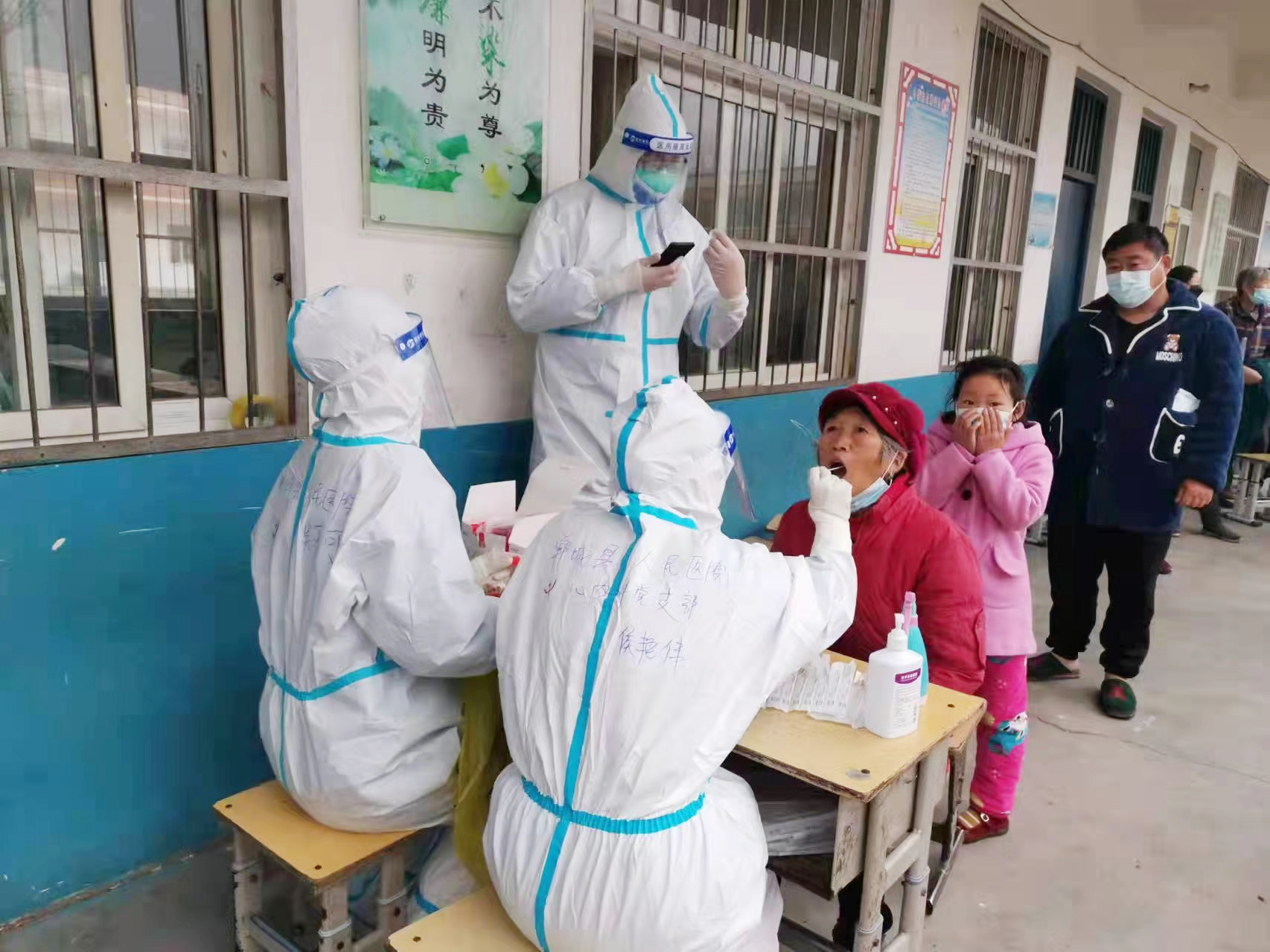 2022年3月23日,太康疫情形勢嚴峻,為響應縣委、縣政府號召,醫(yī)院火速征集人員前去支援。她毫不猶豫主動申請前去支援。在太康支援期間,她每天入戶為封控區(qū)村民采集核酸,從沒有抱怨苦和累。在采集任務結束后,作為第八小組組長,侯艷偉還帶領著她的組員利用短暫的休息時間,為當?shù)氐拇迕窦皩W生培訓七步洗手法,并教給他們一些抗疫小知識,受到了當?shù)厝罕姷囊恢驴滟潯?/p>