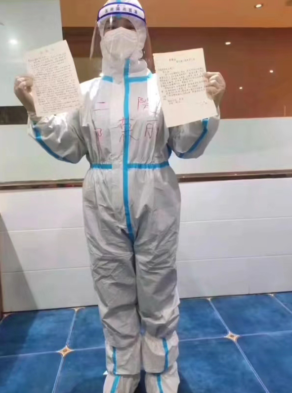2022年1月太康縣出現(xiàn)確診病例密切接觸者,根據(jù)防控要求,這次需要隔離的人員多為太康第三中學(xué)的學(xué)生,接到通知后的郭榮麗再次投入工作。她看到被隔離的孩子在緊張、恐懼的情緒中還在學(xué)習(xí),她既心痛又欣慰。郭榮麗的兒子和被隔離的孩子同歲,母親了解孩子,她每天都會和這些孩子聊天,了解孩子的心理狀況,解除孩子的恐懼心理,很快孩子們就和她熟悉起來。整個隔離期間,這些孩子有心里話也會告訴郭榮麗。觀察結(jié)束后,孩子們還給她和醫(yī)護(hù)團(tuán)隊寫了一封感謝信,信中說“我想看看您摘掉口罩后的樣子,我想那是天使的模樣”。