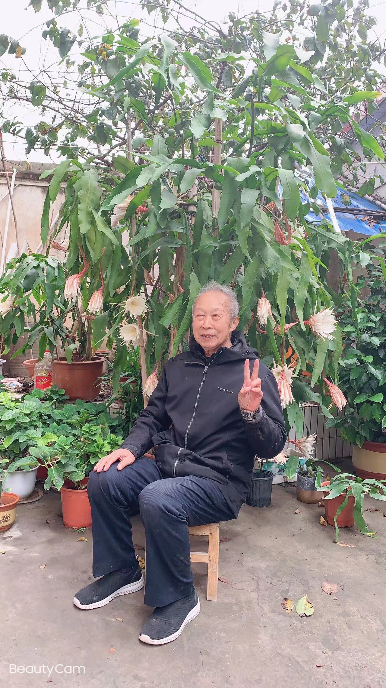 站在曇花旁,苗天才夫婦迎來送往,雖然年事已高,他們依然耳聰目明、言談清晰,全無老態(tài)龍鐘之感?;ㄋ朴?,發(fā)如雪,命運(yùn)的饋贈,為何對他們格外慷慨?