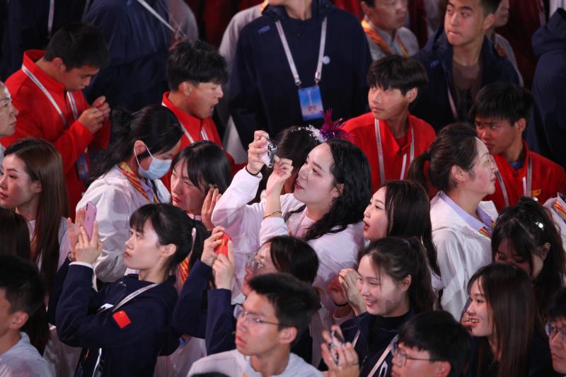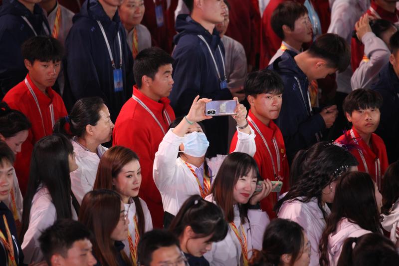 閉幕式上,來自全省各地的運(yùn)動(dòng)員用手機(jī)記錄下精彩瞬間。記者 劉俊濤 攝