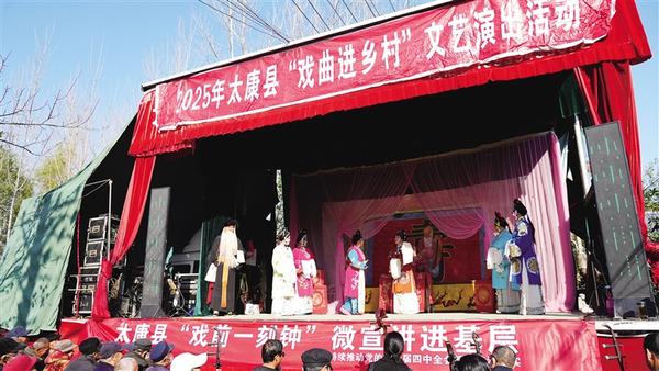 初冬時節(jié),陽光和煦。近日,太康縣道情劇團開展送戲下鄉(xiāng)活動,在轉(zhuǎn)樓鎮(zhèn)周莊村為群眾上演了《珍珠塔》《王金豆借糧》等經(jīng)典道情劇目,豐富了群眾的精神文化生活。圖為《珍珠塔》演出現(xiàn)場。記者 張洪濤 攝