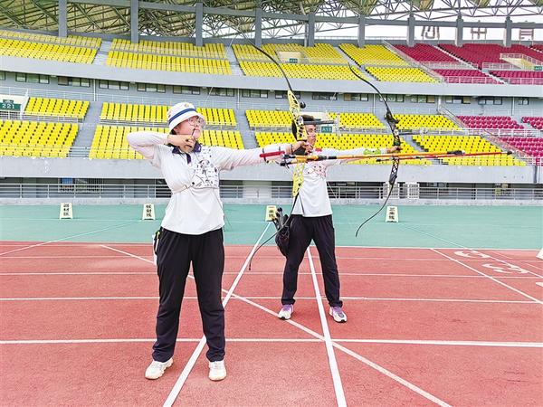 4月22日下午,鄭州代表隊隊員白向彤、宋雨航在比賽中。當天,“奔跑吧·少年”2024年河南省青少年射箭冠軍賽在周口市體育中心圓滿收官。