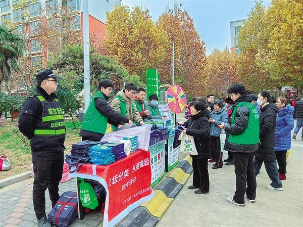 12月10日上午,市城鄉(xiāng)一體化示范區(qū)垃圾分類辦公室組織志愿者到文昌街道中原社區(qū)開展垃圾分類宣傳活動。