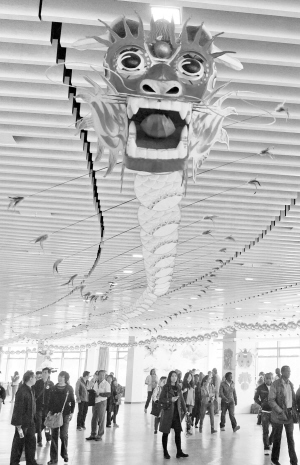4月11日,游人在園博園參觀開幕式上的風(fēng)箏展覽。當(dāng)日,2015年北京國際風(fēng)箏節(jié)在北京豐臺區(qū)園博園開幕,來自廣東、山東等國內(nèi)20支代表隊和美國、英國等22支國外代表隊的120位風(fēng)箏愛好者參加風(fēng)箏節(jié)。新華社發(fā)